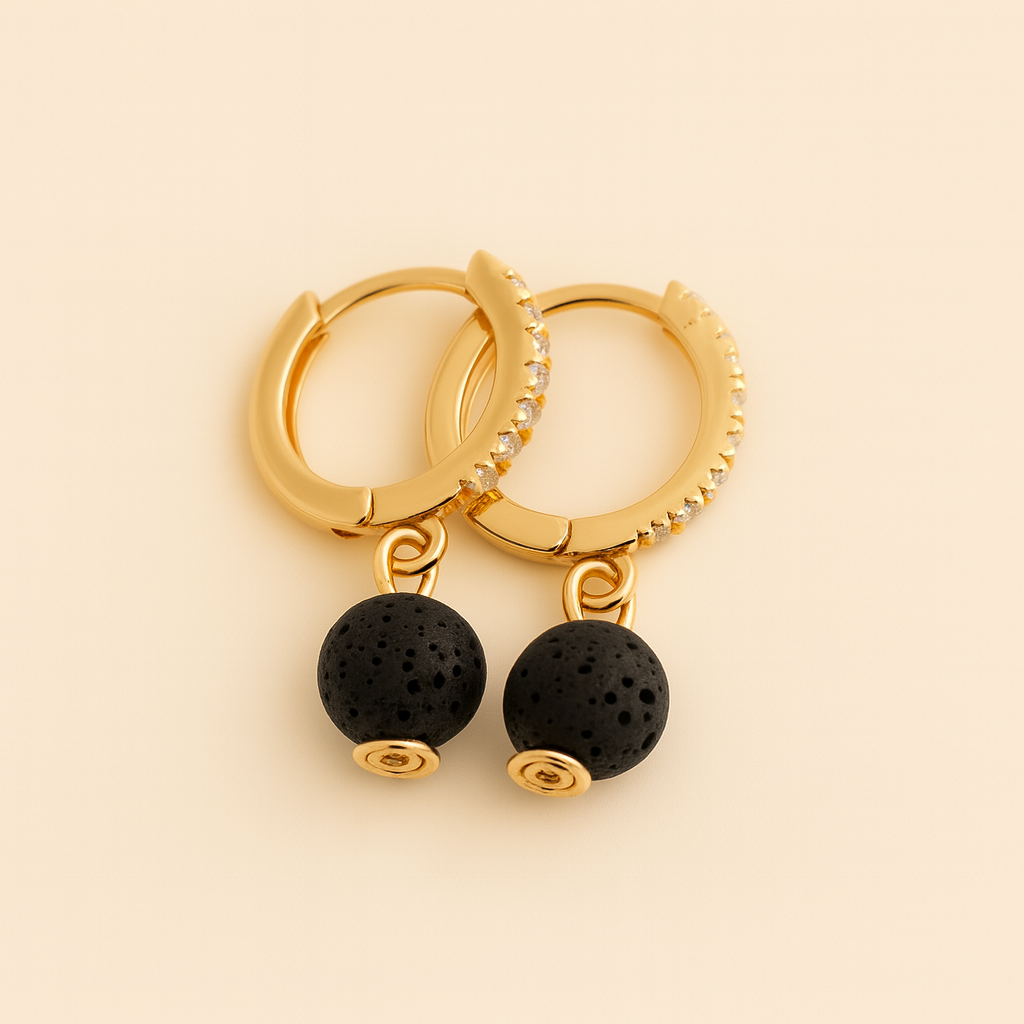Inspirées par la lumière du ciel et la fraîcheur de l’eau, elles allient la pierre volcanique à de délicates zircones scintillantes, pour un bijou à la fois apaisant et rayonnant.