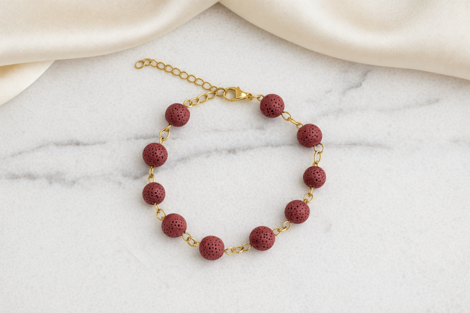 Chaque perle capture la lumière et vos synergies Divine Flos. Grâce à la pierre de lave, Rosalia devient bien plus qu’un bijou, c’est un rituel de bien-être à porter au poignet, qui vous accompagne toute la journée avec un parfum subtil et apaisant.