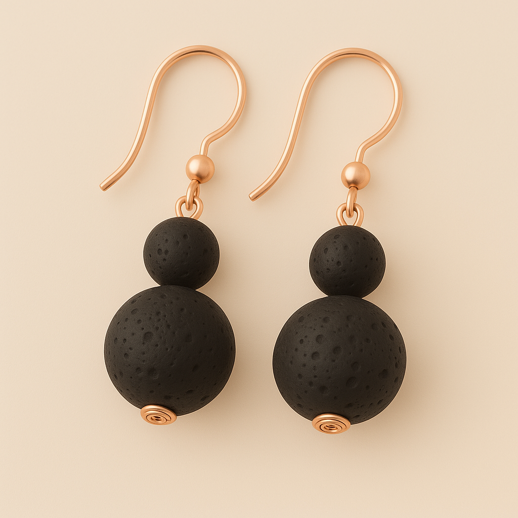 Luma Flos Création artisanale – Argent plaqué or rose 3µ & Pierres volcaniques