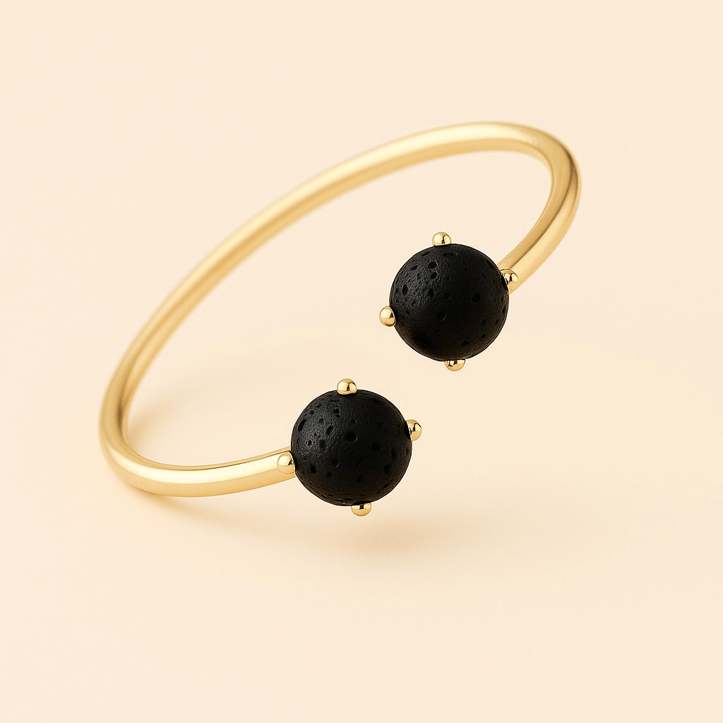 Dualis jonc création artisanale en argent 925 plaqué or jaune & Pierre volcanique & zircones