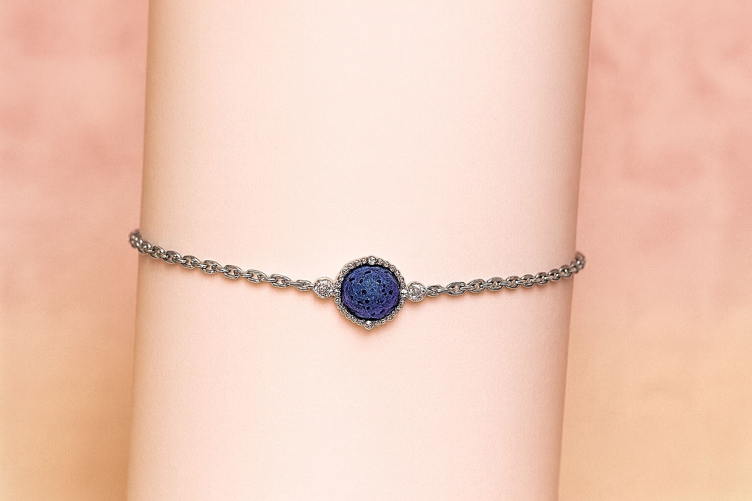 Quelques gouttes de nos synergies aromatiques Divine Flos sur les pierres volcaniques, et votre bracelet s’éveille comme une fleur parfumée. Portez votre fragrance bien-être toute la journée, en toute discrétion.
